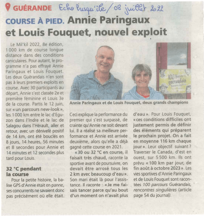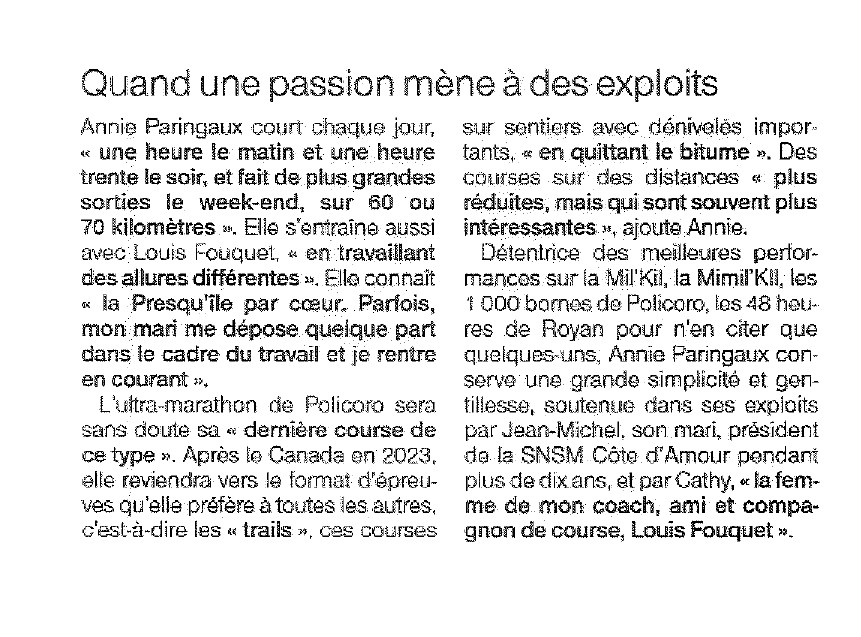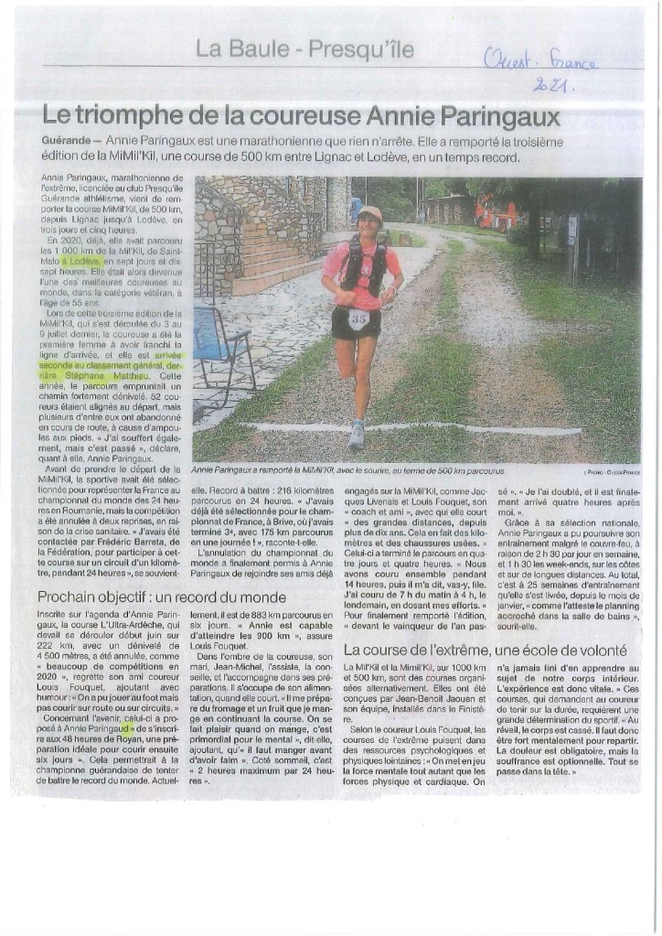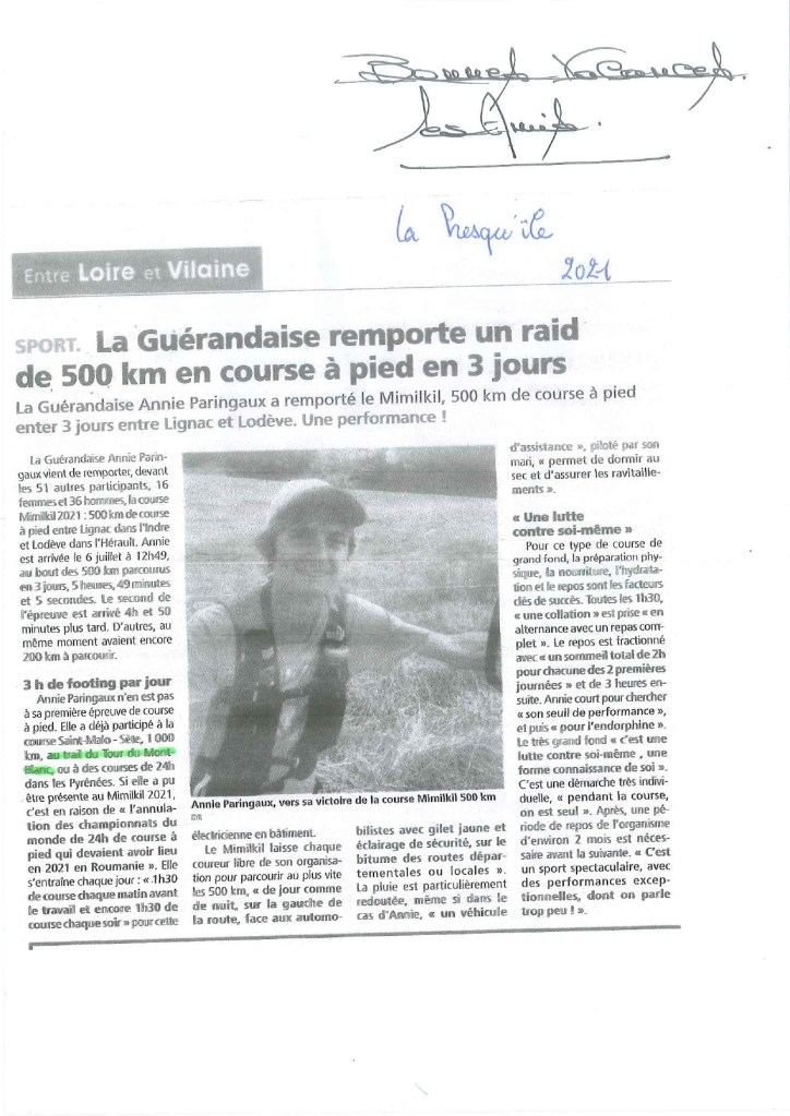 Annie PARINGAUX remporte un raid de 500 km en course à pied (3d 05:49:05) et Louis FOUQUET (5ème homme) 4d 04:12:12 h